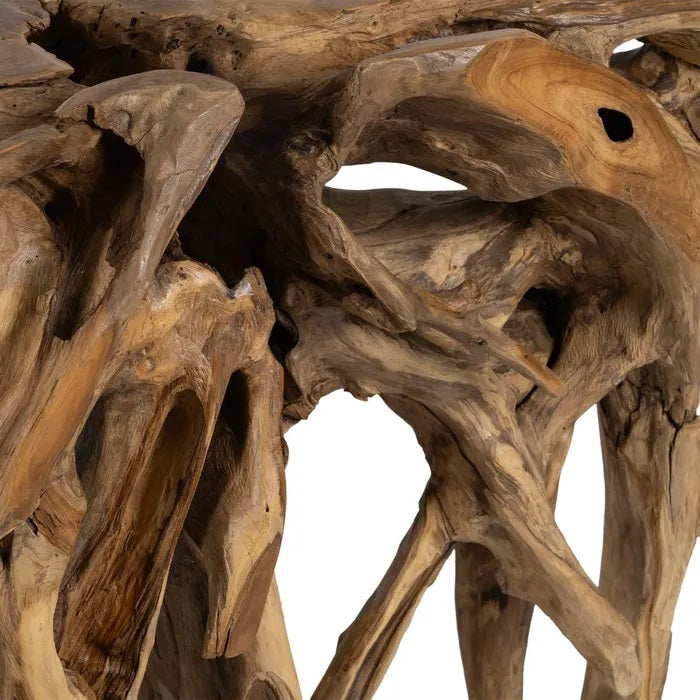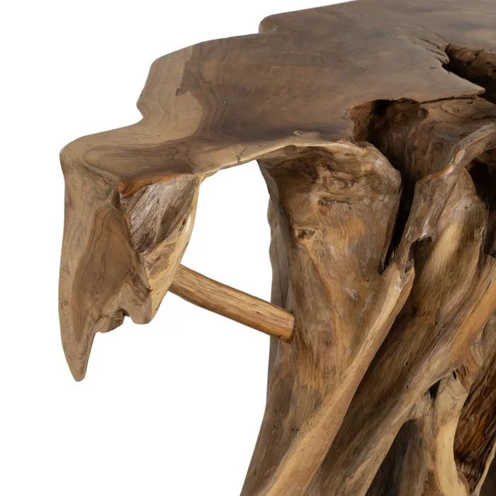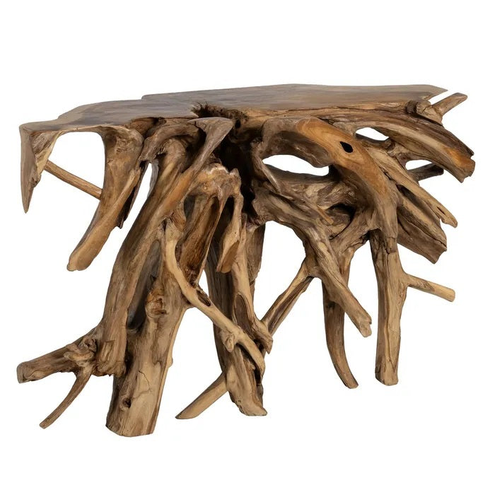 Espectacular consola, de gran tamaño y diseño rústico, fabricada en madera de teca con bonito acabado natural.