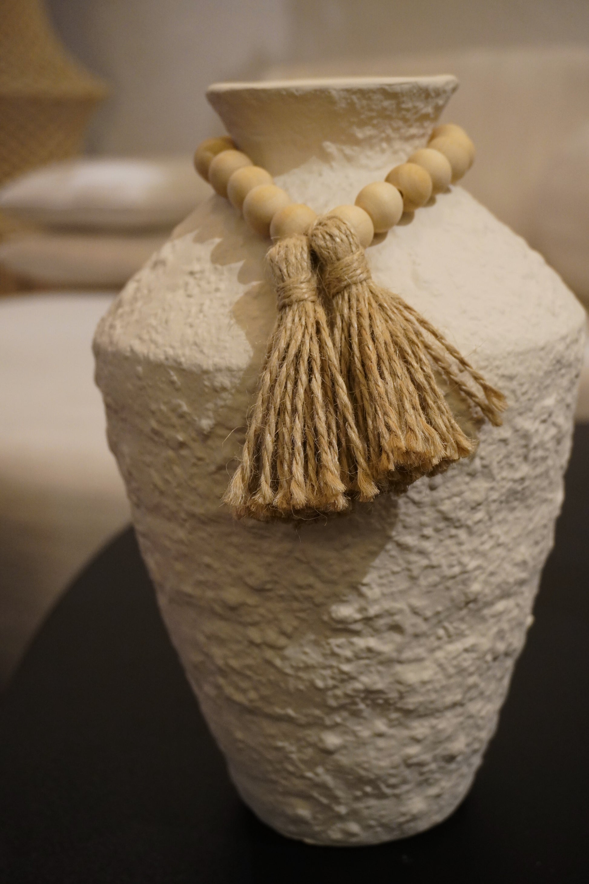 Ideal para decorar con flores secas, ramas o incluso como pieza decorativa por sí sola, este florero añade carácter y armonía a espacios interiores de estilo boho, mediterráneo o natural.