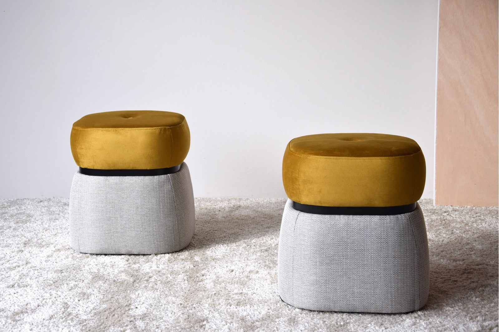 PUF BEIGE Y TERCIOPELO MOSTAZA