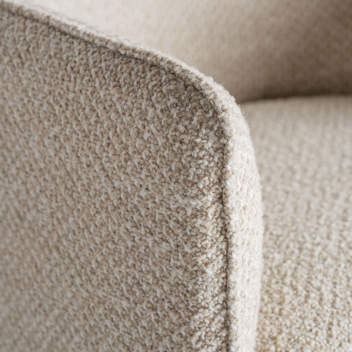 Sillón mayun de estilo art deco, fabricado en poliéster en color beige, combinado con hierro.